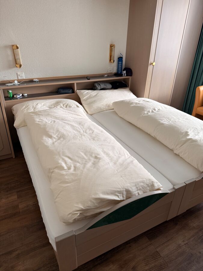 Chambre ou salle de bain: comme pratiquement dans tous les hôtels, il manque des crochets à certains endroits pour pendre vestes ou peignoirs ou casquette/chapeau etc ... Dans notre chambre me semble-t-il, l'armoire est mal placée... en pleine bordure du lit ce qui empêche la 2ème personne d'y avoir accès. A part ça: TB !