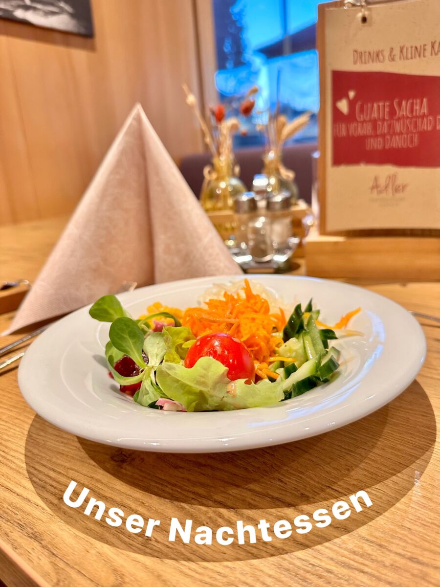 Das Essen war abwechslungsreich und vielfältig. Der Service sehr freundlich und angenehm. Das Hotel im Bregenzerwald kann empfohlen werden.