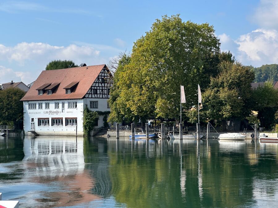 Büsingen, avec son Vieil Moulin du Rhin (Alte Rheinmühle) aux portes de Schaffhouse, est entourée de la Suisse, bien qu’elle fasse partie de l’état allemand du Bade-Wurtemberg. Nous vous gâtons d’une cuisine distinguée de 14 points Gault-Millau au bon goût du terroir et d’une atmosphère stylisée, au beau milieu de cette localisation idyllique, dans nos belles chambres doubles de caractère, équipées tout à la fois de meubles du 17ème et du 18ème siècle et de technologie moderne.
